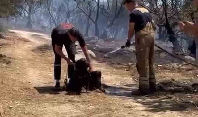 Bursa'nın Osmangazi ilçesi İsmetiye Mahallesi'nde çıkan orman yangınında, vatandaşlar tarafından kurtarılan iki köpeğe itfaiye ekipleri tarafından ilk müdahale yapıldı. Bu yürek ısıtan anlar, amatör kamera ile saniye saniye kaydedildi.