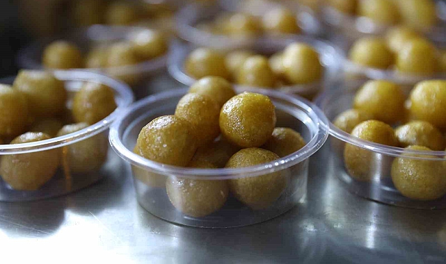 Antalya Büyükşehir Belediyesi, Regaip Kandili'nde 19 ilçede cami önlerinde kurduğu mobil stantlarda sıcak lokma dökülerek vatandaşlara ikram etti.