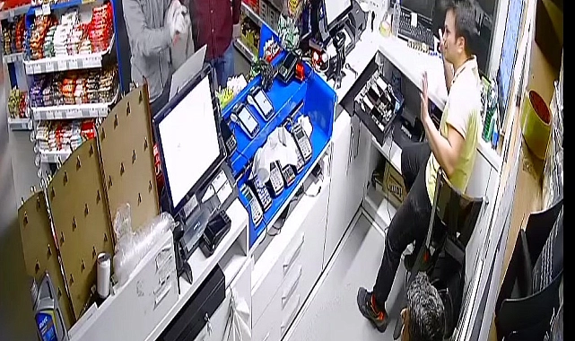 Soygunu yapmaya kararlı olan şüphelilerden E.İ. yanındaki tabancayı çıkartarak havaya ateş açarak paraları istedi. Paniğe kapılan Onur E., kasadaki 20 bin TL'yi çıkartarak şüphelilerin verdiği poşetin içerisine koydu. Şüpheliler parayı ve işyerinden birkaç paket sigara alarak çıktı. Soyguna giren şüpheliler ve dışarıda gözcülük yapan İ.Ö. (17) kaçarak izini kaybettirdi.