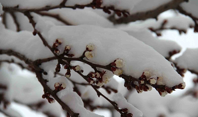 Afşin ilçesinde bir haftadan beri mevsimin üzerindeki sıcaklardan dolayı güneşi gören erikler erken çiçek açtı. Gece aniden bastıran kar ve ardından ayazın etkisiyle çiçek açan erikler dondu. Çiçek açan erikler kar ile birleşince de ortaya kartpostallık görüntüler oluştu.