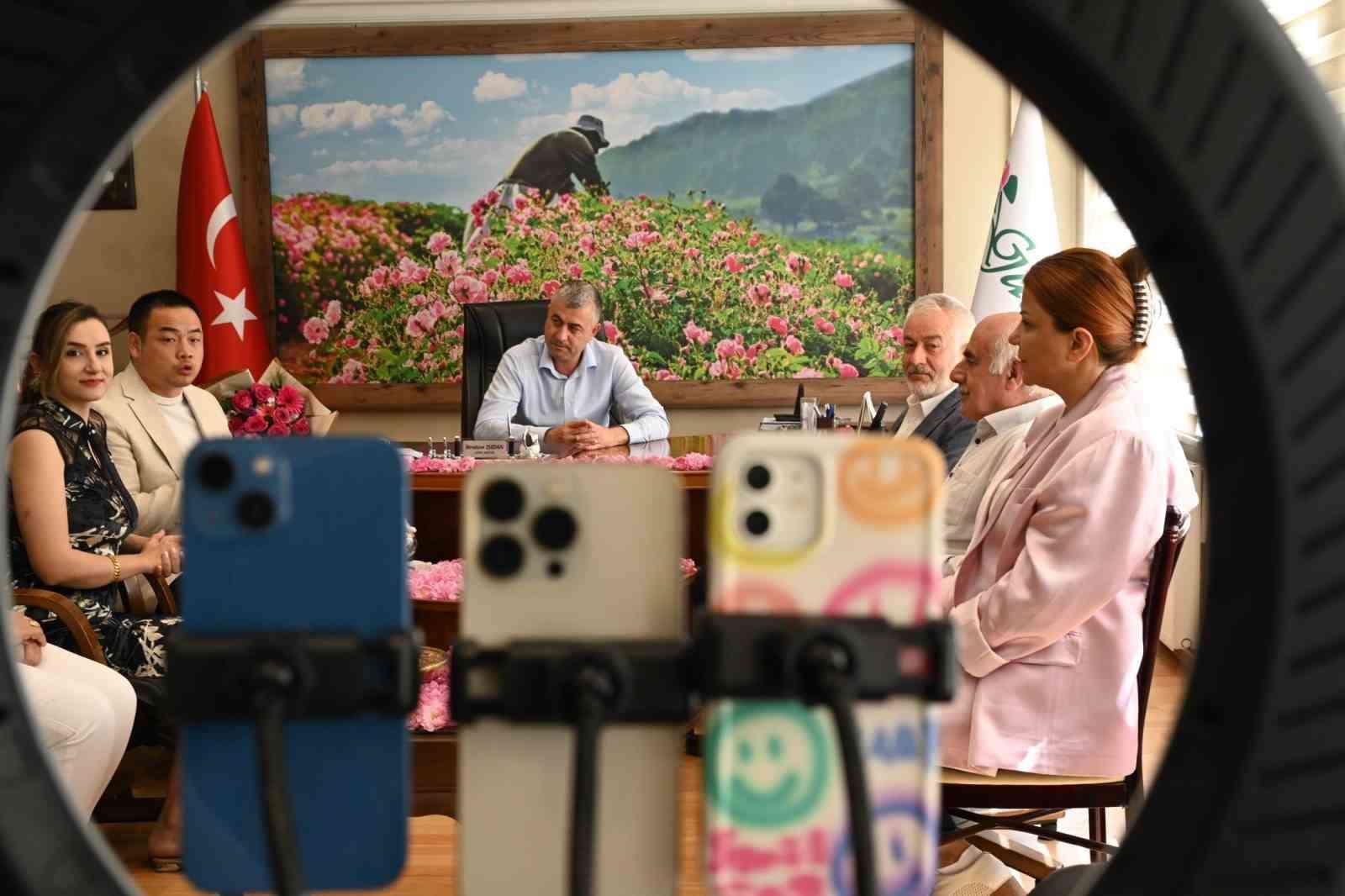 Isparta, gül hasat döneminde yerli ve yabancı misafirlerini ağırlamaya devam ediyor. Özellikle yurtdışından gelen sosyal medya fenomenleri Isparta'nın marka değeri gülü tüm dünyaya tanıtıyor. Çin Halk Cumhuriyeti'nde 5 milyondan fazla takipçisi bulunan sosyal medya fenomeni Dahu ve Aıxia ailesi, Gülbirlik ve Rosense'nin misafiri olarak Isparta'ya geldi. Dahu ve Aıxia ailesi, Gülbirlik'te 3 sosyal medya platformu üzerinden canlı yayın yaptı. Ailenin canlı yayın konuğu Isparta Belediye Başkanı Şükrü Başdeğirmen oldu. Başkan Başdeğirmen, Dahu ve Aıxia ailesi ve takipçilerine Isparta gülünü anlatarak, Çin halkını Isparta'nın güzelliklerini görmeye davet etti.