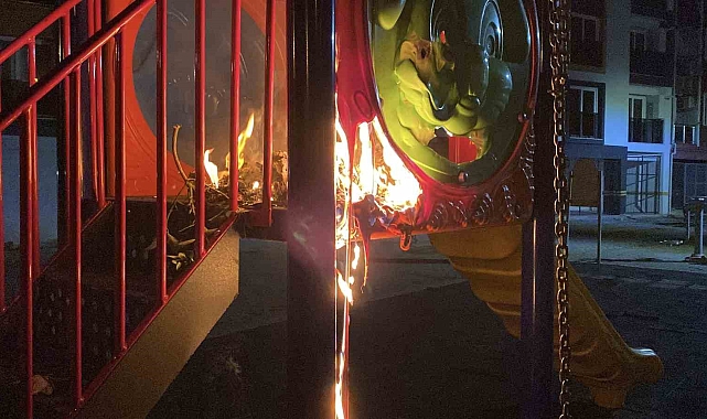Aydın'ın Efeler ilçesinde gece saatlerinde üzücü bir olay yaşandı. Kimliği henüz belirlenemeyen 3 şahıs, bir çocuk oyun parkındaki plastik kaydırağı ateşe vererek olay yerinden kaçtı.