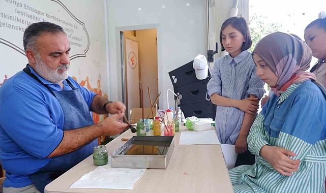 Yıllar önce bir merak sonucu başladığı ebru sanatında yüzlerce eser ortaya çıkaran Mehmet Kotan, Kültür Festivali çerçevesinde Olimpiyat Parkı'nda açtığı ebru atölyesinde, genç sanatseverlere geleneksel Türk sanatı olan ebrunun inceliklerini keşfetme fırsatı sunuyor. Mehmet Kotan atölyesinde ebru sanatına dair teknik bilgileri aktarırken zaman zaman da bu sanatın kökenleri ve tarihîni de anlatıyor. Her çocuk, kendi ebru çalışmasını yaparken atölye sürecine büyük bir ilgi ve heyecanla katılımın olduğu gözleniyor.