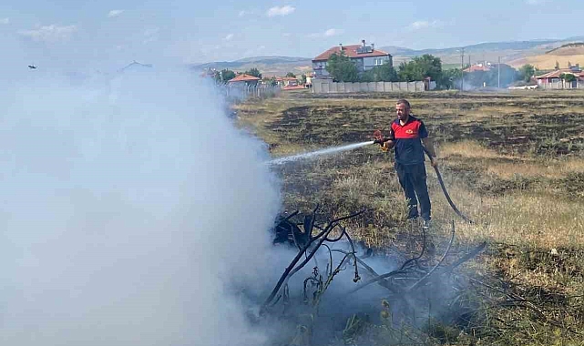 Çorum'un Alaca ilçesi Cengizhan Mahallesi'nde bulunan boş bir arsada istiflenmiş yaklaşık 5 ton odun, çıkan yangında tamamen kül oldu.