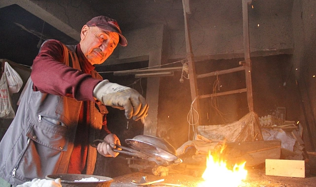 Çorum'un Alaca ilçesinde kalaycılık mesleğinin son temsilcilerinden olan 76 yaşındaki Salih Dokuz, 69 yıllık mesleğini ilk günkü aşkla yapıyor.