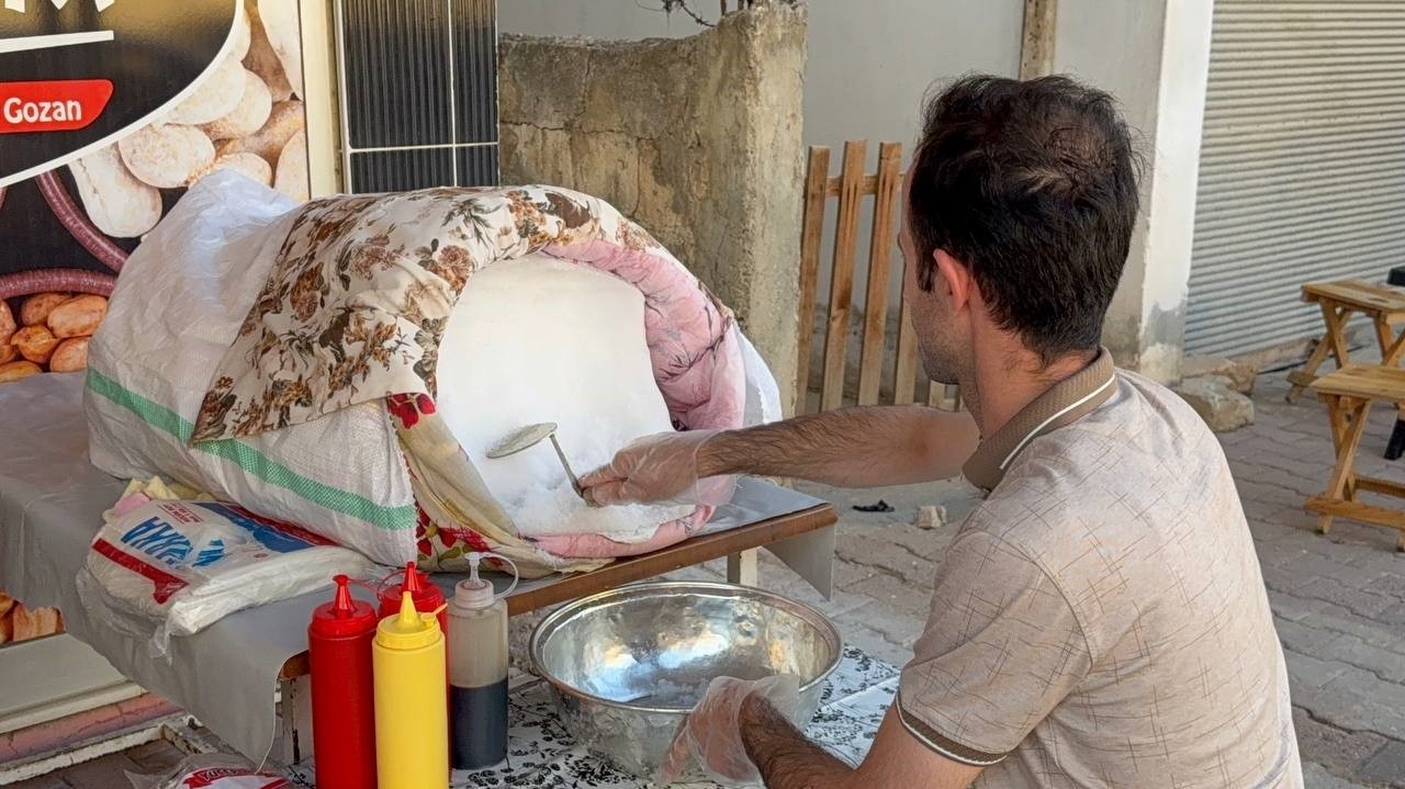 Adana'da bunaltıcı şekilde sıcak hava etkisini sürdürürken serinlemek için farklı yöntemlerde deneniyor. Kozan ilçesinde sıcaklığı değerlendiren esnaflardan Yunus Çelik Mersin'den Toros Dağları'nın zirvesinden kar getirdi. Getirdiği kara çeşitli meyve şuruplarıyla tatlandıran Çelik, tabağını da 50 TL'den satışa çıkardı. Tabakta kar yiyenler, hem serinlediklerini hem beğendiklerini belirtti.