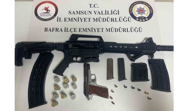 İlçe Emniyet Müdürlüğü ekiplerince öz yeğeni tarafından tüfekle tehdit edilen F.T(53)'ün ihbarı üzerine, İsmetpaşa Mahallesi'ndeki olay yerine giden polis ekipleri, M.K(24) isimli erkek şahsın ikametinde yapılan aramada, 1 adet ruhsatsız tabanca, 9 adet 9 mm fişek, 1 adet tüfek, 10 adet dolu tüfek kartuşu ele geçirildi.