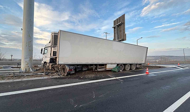 Edinilen bilgilere göre, Edirne istikametinden İstanbul istikametine giden Celil B. idaresindeki 80 ACU 112 plakalı tır sürücüsü, direksiyon başında kalp krizi geçirdi. Sürücüsünün rahatsızlanması sonucu kontrolden çıkan tır, yol kenarında bulunan bariyere çarparak durabildi.