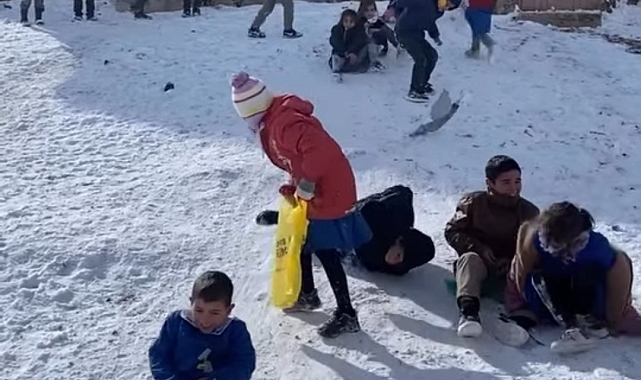 Ağrı'nın Diyadin ilçesinde yaşanan yoğun kar yağışı, zorlu kış koşullarına rağmen çocukların yaratıcılığını ortaya çıkardı. İlçe merkezinde bulunan Altın Kilit İlkokulu öğrencileri, kayak merkezlerine ulaşımın zor olması nedeniyle kendi imkanlarıyla eğlenceli bir çözüm buldu. Evlerinden getirdikleri naylon poşetlerle kayarak karın keyfini doyasıya yaşadılar.