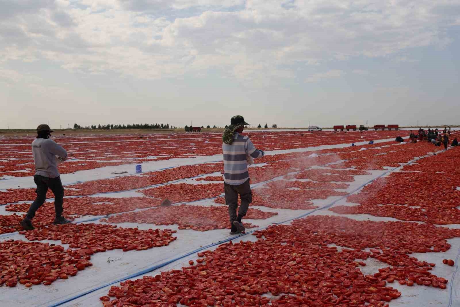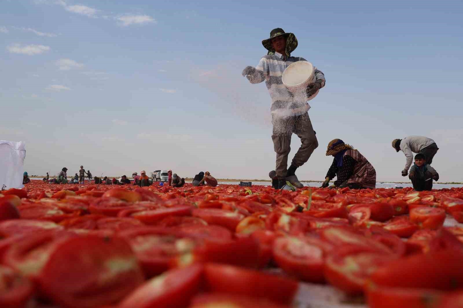 Hasat edilen ve alınan domatesler, işçiler tarafından serilen sentetik kumaş üzerine ikiye bölünüp tuzlanıyor. Kentte 40 derece üzeri kavurucu sıcakta yapılan bu işlemin ardından toplanan domatesler, işlendikten sonra İtalya, Fransa ve İngiltere gibi Avrupa'nın birçok ülkesine ihraç edilip meze ve pizza sosu olarak kullanılıyor.