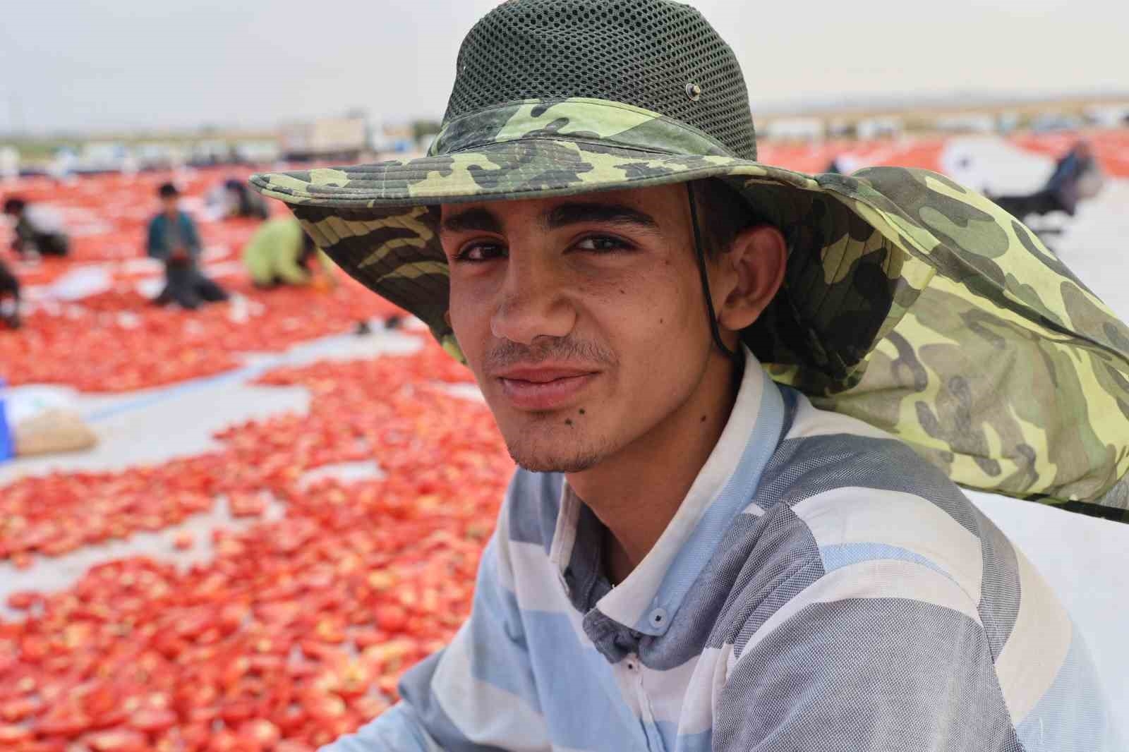Çalışanlardan Semih İlik, domates kuruttuklarını belirterek, "Bende kesilen domatesleri tuzluyorum. Kurunun daha kaliteli olması için. Bu işi, 40-50 derece altında yapıyoruz. Arkadaşlarımızla severek bu işi yapıyoruz. Çok şükür alın teriyle geçiniyoruz" diye konuştu.