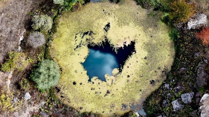 Sivas’ın Doğanşar ilçesinde bulunan ve benzerliğiyle 'timsah gözü' olarak da adlandırılan Dipsizgöl Tabiat Parkı, sonbaharda büründüğü pastel renk cümbüşüyle ziyaretçilerini kendine hayran bırakıyor.