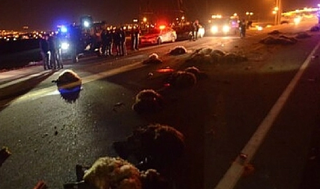 Doğubayazıt’tan Iğdır’a doğru seyir halindeki bir aracın koyun sürüsüne çarpması sonucu, 17 küçükbaş hayvan telef olurken 15 hayvan da yaralandı.
