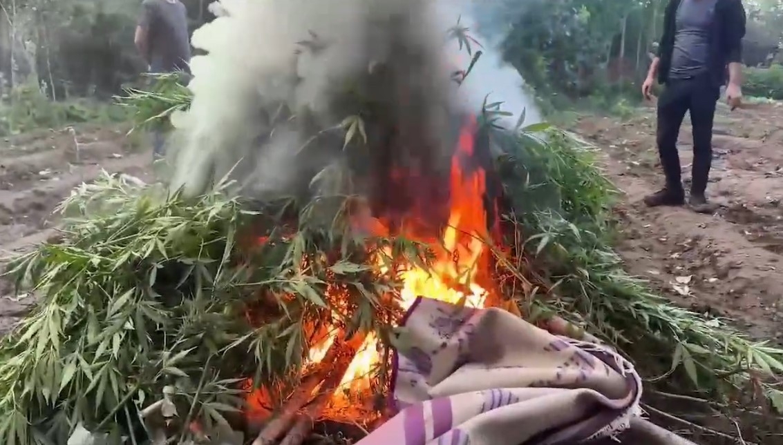 Operasyonda dron ile tespit edilen 20 farklı alanda 3 bin 267 kök kenevir bitkisi ile 800 kilogram esrar maddesi bulundu. Kenevirler polis ekiplerince numune alınmasının ardından yerinde imha edildi.