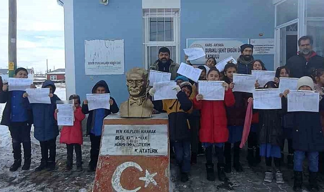 Kars'ın Akyaka ilçesine bağlı Duraklı köyünde bulunan Şehit Ergün Ünlü İlkokulu öğrencileri, yarıyıl tatiline girmenin heyecanını yaşadı. Yoğun bir dönemin ardından karnelerini alan minik öğrenciler, öğretmenlerinin tebessümleriyle karşılaşmanın mutluluğunu yaşadı.