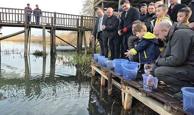 Programda, Milli Parklar ve Yaban Hayatı Koruma Müdürlüğünce üretilen yavru sazan balıkları, Efteni Gölü'ne bırakıldı. Vali Aslan, çocuklarla birlikte yavru sazanları göle bıraktı.