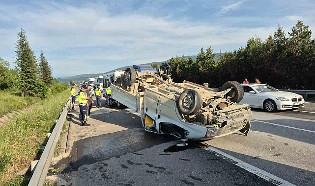 Edinilen bilgilere göre, Ankara istikametinden İstanbul yönüne seyir halinde olan E.B. idaresindeki 34 HY 2487 plakalı pikabın lastiği patladı. Sürücüsünün direksiyon hakimiyetini kaybetmesiyle araç yolda takla attı. Kazada araç sürücüsü E.B. ile araçta bulunan H.G. ve B.A. yaralandı.