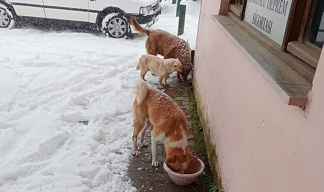Düzce'yi etkisi altına alan kar yağışında Çilimli Belediyesi sokak hayvanlarını unutmadı. Kentteki mama noktalarına düzenli olarak mama bırakılıyor.