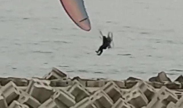 Düzce'nin Akçakoca ilçesinde meydana gelen korkutucu bir olayda, yamaç paraşütü yapan bir sporcu, ani esen rüzgarın etkisiyle kontrolünü kaybederek dalgakıranların üzerine düştü.