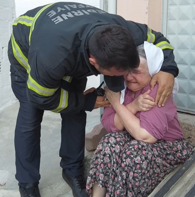 Edirne'nin Abdurrahman Mahallesi'nde bir dairede çıkan yangın, çevredekilere korku dolu anlar yaşattı. Yangına müdahale eden itfaiye ekipleri, kardeşinin evinin yandığını gören yaşlı bir kadına sarılarak teselli etti.
