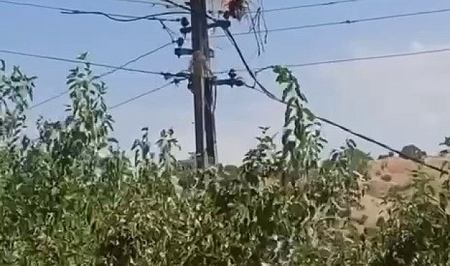Adıyaman'da, elektrik direği üzerinde bulunan leylek yuvası alev alarak cayır cayır yandı.