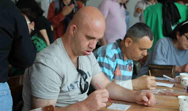 Hatay'ın İskenderun ilçesinde engelli vatandaşlar ve anneleri, çini boyayarak eğlenceli vakit geçirdi.