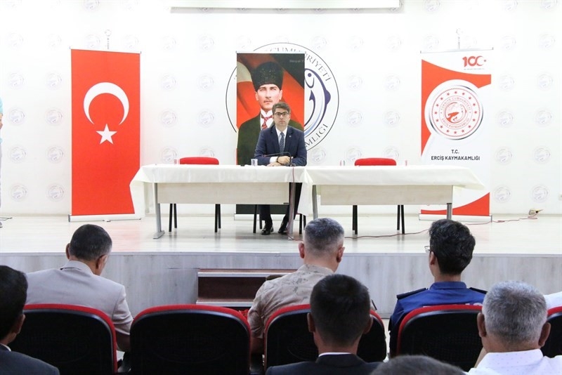 Erciş Kaymakamlık konferans salonunda yapılan program, saygı duruşu ve İstiklal Marşı'nın okunmasıyla başladı. Toplantıda, kurum amirleri birer değerlendirme konuşması ve sunum yaptılar. Konuşmaların ardından muhtarların mahalleleri ile ilgili sorun ve taleplerini dinleyen Kaymakam Murat Karaloğlu, dile getirilen konularla ilgili kurum müdürlerine doğrudan ileterek muhtarlara yardımcı olunması, sorun ve taleplerin çözümlenmesi talimatını verdi.