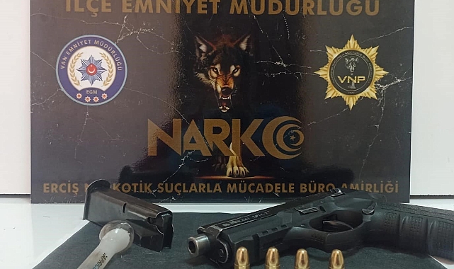 Erciş Cumhuriyet savcısının talimatları doğrultusunda, Erciş Narkotik Suçlarla Mücadele Büro Amirliği ekiplerince operasyon düzenlendi. Düzenlenen operasyonda, çeşitli miktarlarda uyuşturucu ve uyarıcı madde, 1 adet ruhsatsız tabanca, 3 adet kurusıkı tabanca ve çok sayıda fişek ele geçirildi. Hassas burunlu narkotik köpeğinin de katıldığı operasyonda 2 şüpheli yakalanarak gözaltına alındı.