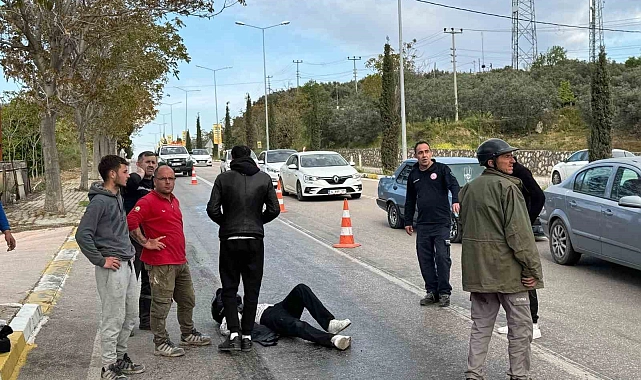 Balıkesir'in Erdek ilçesinde, traktörden yola dökülen yağ nedeniyle kontrolden çıkan motosiklet devrildi. Kazada motosiklette bulunan iki kişi hafif şekilde yaralandı.