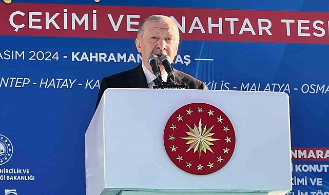 "Kahramanmaraş, 6 Şubat depremlerinden sonra doğruluyor ve devletimizin desteğiyle düştüğü yerden ayağa kalkıyor. 6 Şubat'ta yaşadığımız asrın felaketinin yaralarını hızla sarmak için gece, gündüz demeden çalışıyoruz. Dağlar yüksek ise yol onun üstünden geçer inancıyla şehrimizi daha güzel, daha dayanıklı ve modern hale getirmenin gayreti içerisindeyiz. Asrın inşasını başattık. O günden bu güne dek bir an olsun elimizi deprem bölgesinden çekmedik. Depremzedelerimizi bir an önce kalıcı konutlarına kavuşturmak istiyoruz. Bugün, bu büyük seferberlikte yeni bir adım atıyoruz. Geçen Hatay'da 130 bininci yuvamızın anahtarını hak sahibine teslim etmiştik. Bugün de 155 bininci yuvamızın anahtarını hak sahibine teslim edeceğiz. Birazdan canlı bağlantı ile Malatya'da 2 bin 313, Adıyaman'da 6 bin 912, Elazığ'da bin 407, Hatay'da 5 bin 900, Gaziantep'te 257, Şanlıurfa'da 2 bin 929, Diyarbakır'da 674 ve Adana'da 668 konut hak sahibi kardeşlerimize teslim edeceğiz. Bugünkülerle birlikte Kahramanmaraş'ta il ve ilçelerde 22 bin 208 konut ile 5 bin 170 köy evinin kurasını çekmiş oluyoruz. 2024 sonuna kadar 39 bin 136'sı Kahramanmaraş'ta olmak üzere 11 ilimizde 201 bin 688 bağımsız bölüm afetzede kardeşlerimize teslim edilecek. Gelecek yıl Kahramanmaraş'ta 63 bin 300'i konut olmak üzere toplamda 68 bin 876 konut ve iş yeri teslimatı yapılacak. Deprem bölgemizin tamamında ise 452 bin 983 bağımsız bölümü inşa etmiş olacağız. Rabbim bu hanelerimizde oturacak tüm ailelerimize huzur, güven ve bereket ihsan eylesin."