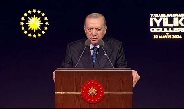 Cumhurbaşkanı Erdoğan, Uluslararası İyilik Ödülleri Töreni'nde dünyanın farklı ülkelerinden gelen misafirleri selamladı. İyilik ve kardeşlik vurgusuyla, Diyanet Vakfı'na teşekkür etti ve şefkat medeniyetinin mensupları olduklarını dile getirdi.