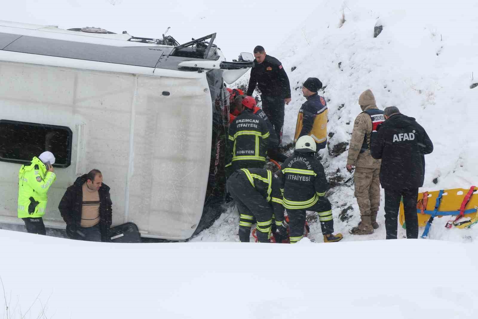 Olay, bugün saat 10.05 sıralarında Erzincan-Sivas karayolu Sakaltutan mevkiinde meydana geldi. İstanbul'un Kartal ilçesinde vefat eden bir vatandaşın cenazesini taşıyan Temsa marka otobüs, frenlerinin patlaması nedeniyle kontrolden çıkarak şarampole yuvarlandı.