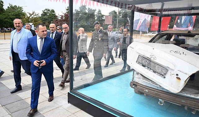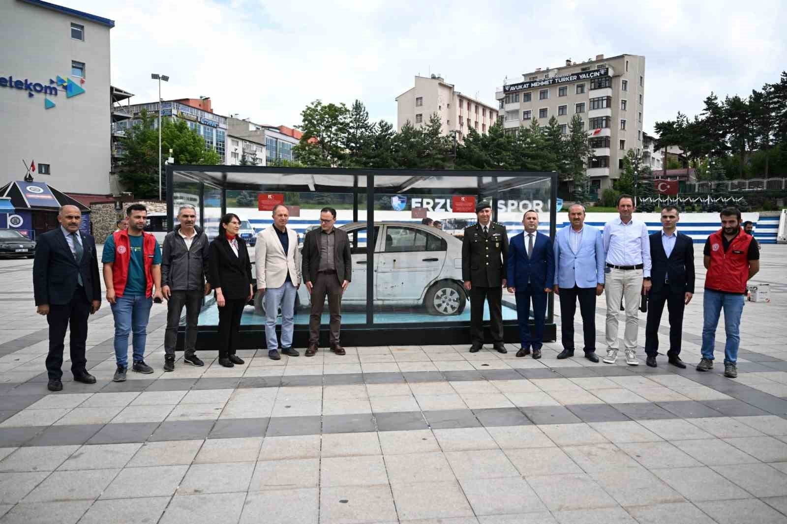 Erzurum'da 15 Temmuz Demokrasi ve Milli Birlik Günü vesilesiyle açılan ateş sonucu hurdaya dönen bir araç sergilendi.