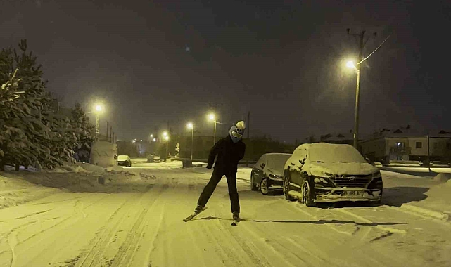 Erzurum'da etkili olan yoğun kar yağışı, kenti beyaza bürürken, gençlerin eğlenceli aktivitelerine de zemin hazırladı. Kar yağışının ardından Erzurumlu gençler, cadde ve sokakları adeta bir kayak pistine dönüştürdü.