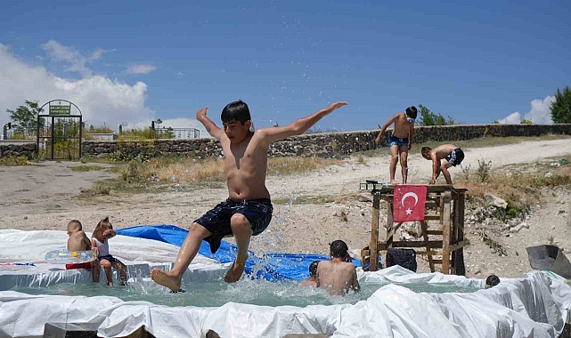 Erzurum'un Palandöken ilçesine bağlı Şehitler Köyü'nde, sıcak yaz günlerinden bunalan çocuklar için adeta bir tatil köyü havası yaratıldı. Duyarlı bir baba olan Berham Karamanlı, kendi çocukları için yaptığı minik havuzu, köydeki diğer çocukların heveslenmesi üzerine kendi imkanlarıyla büyüttü. Çocukların da yardımıyla genişleyen havuza, Karamanlı ayrıca bir atlama rampası ve bulduğu tahtalardan şezlonglar yaparak tam bir eğlence alanı oluşturdu.