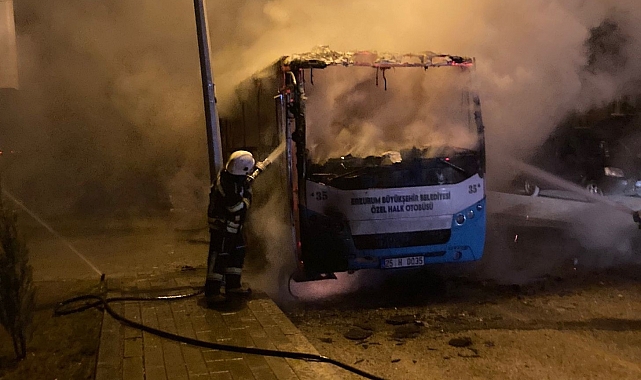 Erzurum'un Palandöken ilçesinde park halinde bulunan bir özel halk otobüsü aniden alev alarak çevrede korku dolu anlar yaşattı. İhbar üzerine olay yerine gelen itfaiye ekipleri, uzun uğraşlar sonucunda yangını kontrol altına alarak söndürdü.