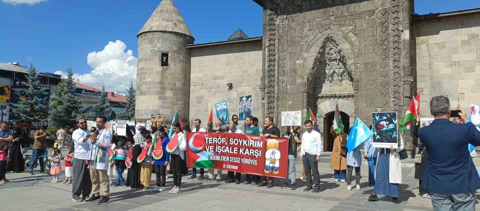 Erzurum'da 32 haftadır kesintisiz olarak İsrail'in Gazze'ye saldırılarını protesto etmek için sağlıkçılar tarafından düzenlenen sessiz yürüyüş artan destekle devam etti.