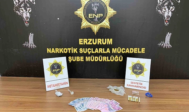 Narkotik Suçlarla Mücadele (NSM) Şube Müdürlüğü görevlilerince yapılan çalışmalarda, 19,25 gram sentetik kannabinoid (bonzai), 1,65 gram metamfetamin, uyuşturucu madde kullanımında kullanılan bir aparat ve 4 bin 900 TL suç unsuru para ele geçirildi.