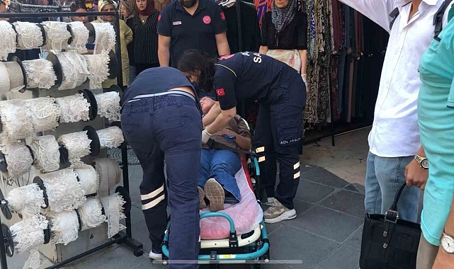 Eskişehir'deki bir giyim mağazasının önünde bir anda baygınlık geçiren kadın, ihbar üzerine olay yerine gelen sağlık ekipleri tarafından hastaneye kaldırıldı.