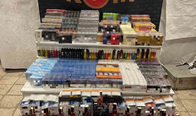 KOM Şube Müdürlüğü ekipleri, kaçak ürün ticareti yapan şahıslara yönelik yürüttüğü çalışmalar kapsamında iki iş yeri ve bir ikamete eş zamanlı baskın düzenledi. Operasyon sonucunda, gümrük kaçağı olduğu tespit edilen 9 bin 996 adet gıda takviyesi, bin 927 adet ilaç, 13 bin 200 adet içi doldurulmuş makaron, 2 bin 883 paket sigara, 200 adet puro, 100 paket tütün, 66 adet elektronik sigara ve likiti ile 16 şişe kaçak ve sahte viski ele geçirildi.