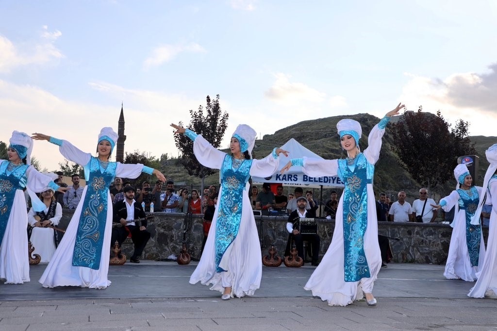 Azerbaycan, Kazakistan, Kırgızistan ve Özbekistanlı sanatçıların folklor gösteriler Karslıları büyüledi.