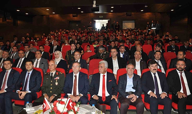 Törene Vali/Belediye Başkan Vekili Ziya Polat, Garnizon Komutanı Tuğgeneral Şahin Yenilmez, Belediye Başkan Vekili Turgay Kızılörenli, kurum ve daire amirleri ile öğrenciler katıldı.