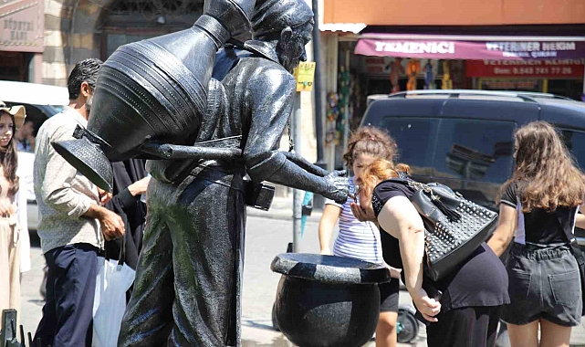 Hava sıcaklığının 40 derece ölçüldüğü Gaziantep'te sıcaktan bunalan vatandaşlar, çeşme başlarında serinlemeye çalıştı.