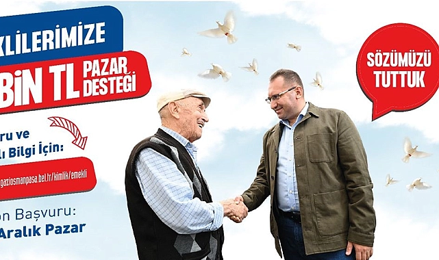 Emekliler, 8 Aralık tarihine kadar pazar desteğine başvuru yapabilecek. Başvurular https://arabul.gaziosmanpasa.bel.tr/kimlik/emekli internet adresinden online olarak alınacak.