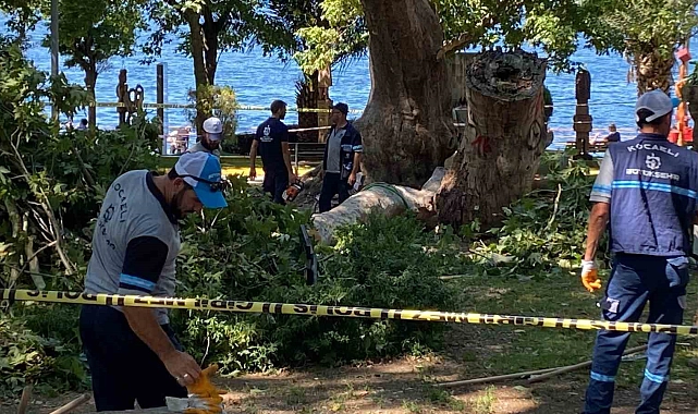 Olay, dün saat 14.30 sıralarında Yalı Mahallesi Saniye Altun Caddesi'nde meydana geldi. Anıt ağaç statüsünde olan bir çınarın üst kısmından kopan devasa bir dal, o sırada altında bulunan 3 kişinin üzerine düştü. İhbar üzerine olay yerine itfaiye, sağlık, polis ve Gölcük Arama Kurtarma Ekibi (GESOTİM) sevk edildi.
