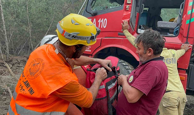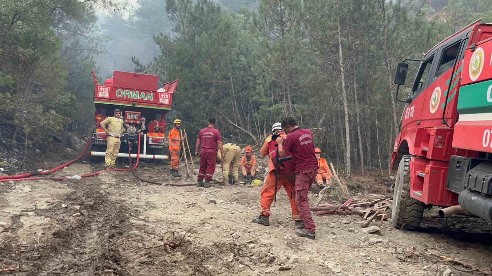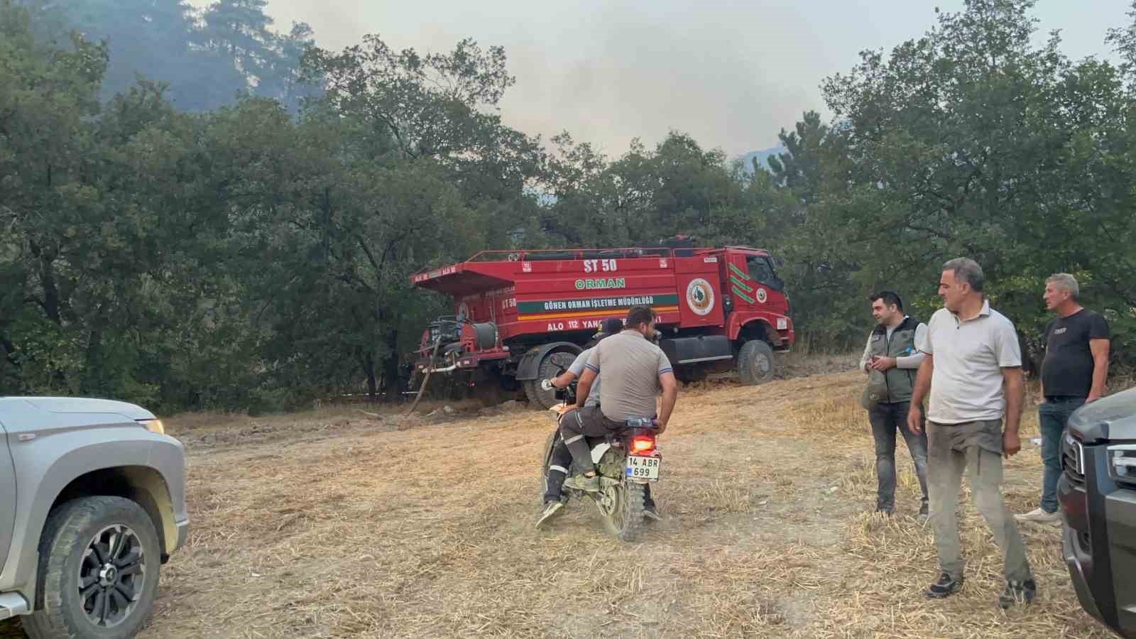 Yangının devam ettiği Göynük ilçesinde ekiplerin dik yamaçlardaki zorlu mücadelesi sürüyor. Gönüllü vatandaşlar ise ormanda yangını söndürmek için görev yapan personelin yükünü hafifletiyor.