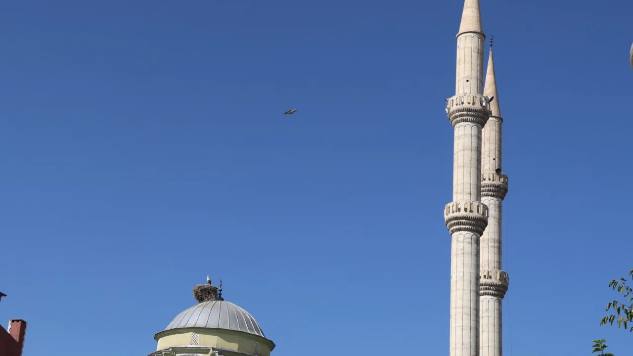 Iğdır Ovası’nın bereketli topraklarında her yaz olduğu gibi bu yıl da göçmen kuşların uğrak noktası olan bölgede leylekler, cami kubbelerinde yuvalarını kurdu.
