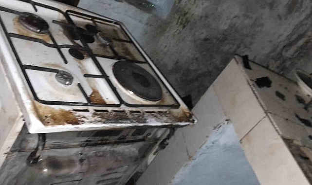 Evin mutfak kısmında büyük maddi hasar meydana gelirken, yaşlı kadın ise yara almadan kurtuldu.