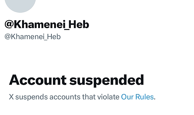 Sosyal medya platformu X, İran'ın dini lideri Ayetullah Ali Hamaney'in İbranice paylaşımlar yapmak üzere açtığı "Khamenei_Heb" hesabını "Siyonist rejim, İran'a ilişkin hesaplarında hata yaptı" paylaşımından saatler sonra askıya aldı.