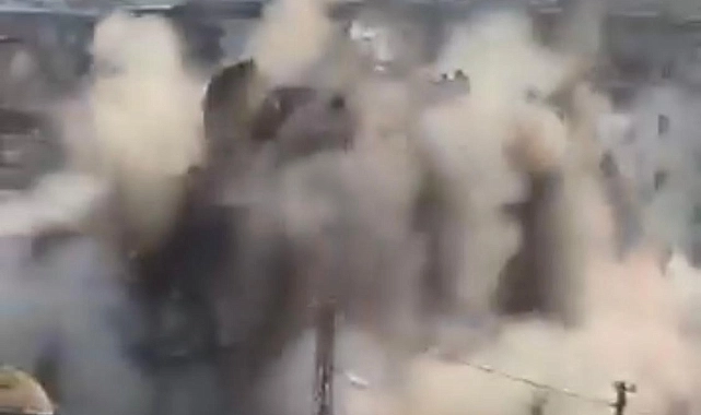 Malatya'nın Battalgazi ilçesinde hasarlı bir bina yıkım işlemleri esnasında iş makinesinin üzerine çöktü. Ortalığı toz bulutlarının kapladığı olayda operatör ise şans eseri yara almadan kurtuldu.